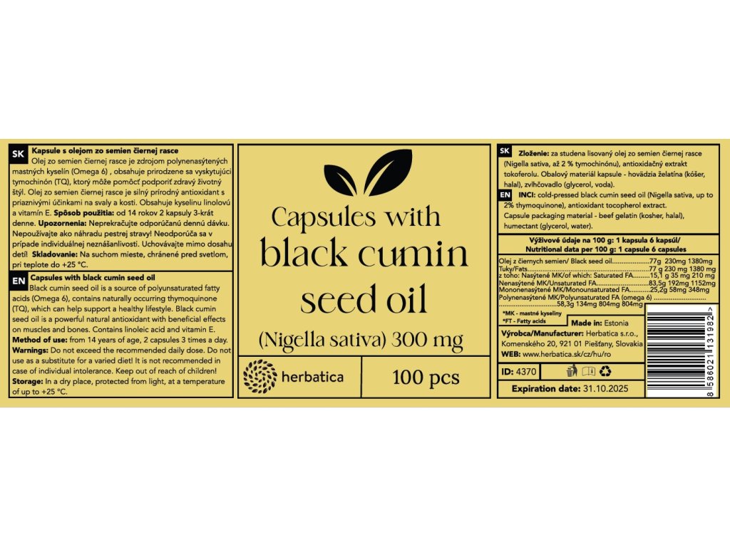 Ulei de semințe de chimen negru (Nigella sativa) în capsule /300 mg - 100 capsule - Herbatica
