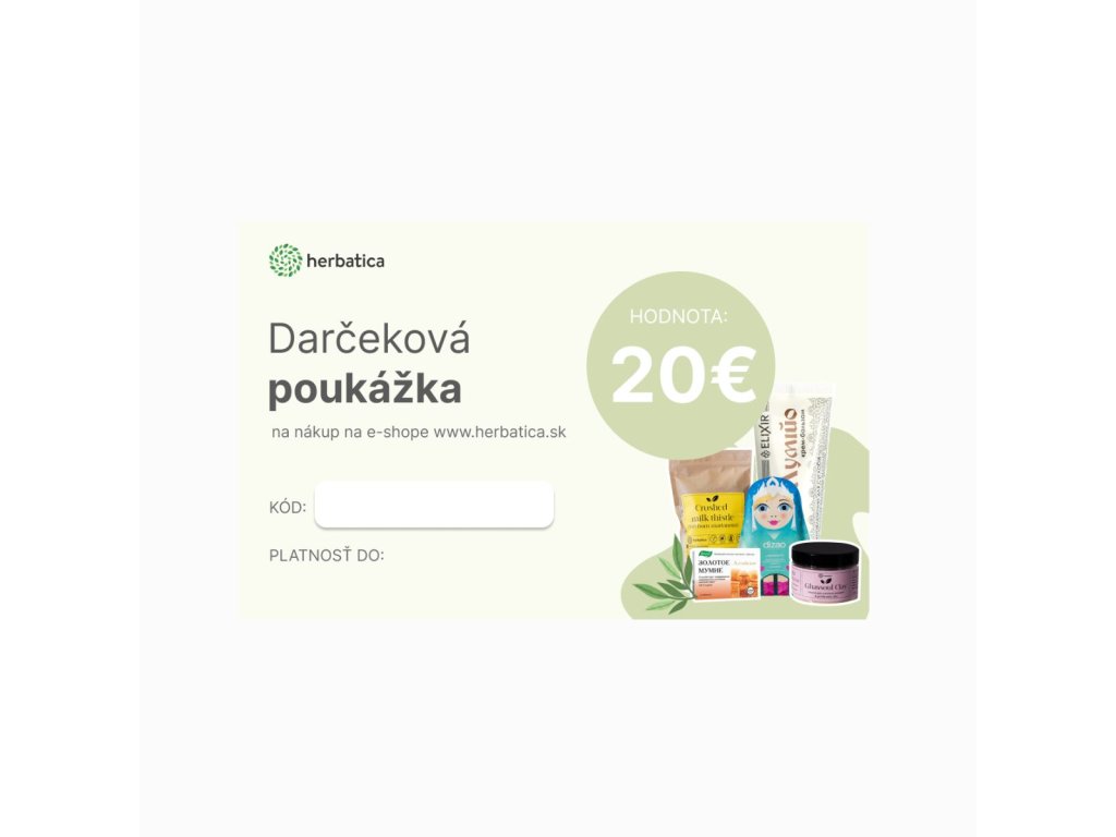 Fiecare voucher poate fi răscumpărat pentru achiziționarea oricărui articol din e-shopwww.herbatica.sk și este un lucru unic.