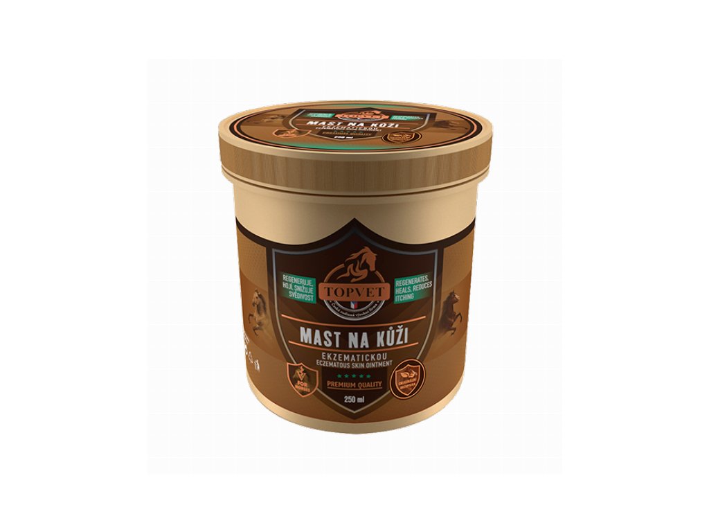 Este destinat cailor cu probleme ale pielii. Formula originală hrănește, hidratează și protejează pielea împotriva factorilor externi. Compoziția pe bază de plante înmoaie pielea, reduce mâncărimea și recuperează elasticitatea. Este potrivită pentru pielea zgâriată a cailor cu erupții cutanate estivale. Unguentul are un efect de durată.