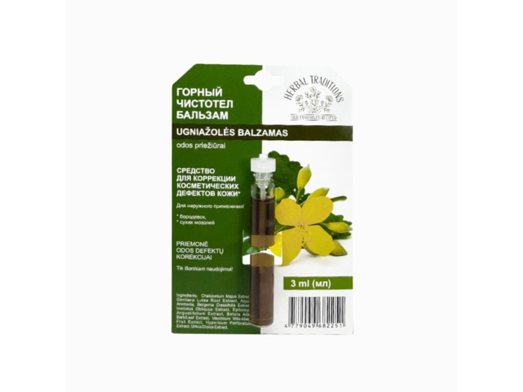 Compozitie: Extract de Chelidonium Majus, extract de rădăcină de Gentiana Lutea, apă, amoniac, extract de Bergenia Crassifolia, extract de Inonotus Obliquus, extract de Epilobium Angustifolium, extract de scoarță/ frunză de Betula Alba, extract de fructe de Vaccinium Vitis-Idaea, extract de Hypericum Perforatum, extract de Urtica Dioica.