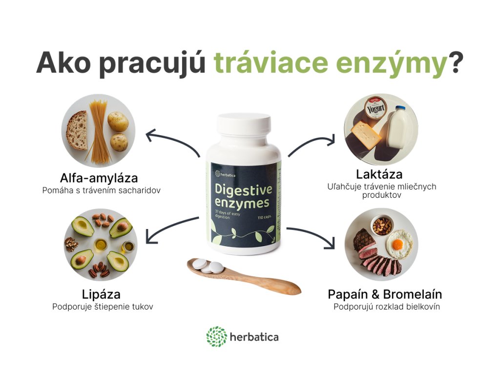 Enzimele digestive sunt produse de diferite organe, inclusivstomac, pancreas și intestin subțire. fiecare tip de enzimă este conceput pentru a descompune un anumit ingredient alimentar, de exempluproteine, grăsimi, carbohidrați sau lactoză.
