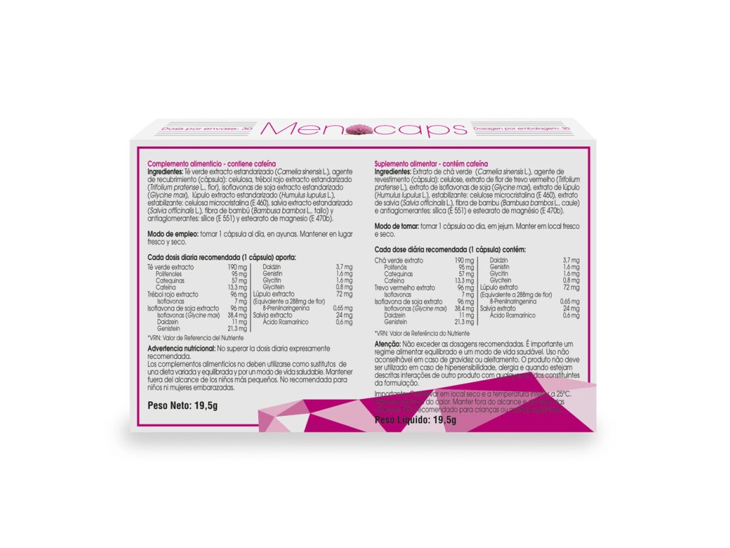 | Ingrediente: | Green Tea Extract (Camellia sinensis), Red Clover Extract, Soy Isoflavones standardized extract (Gycine max), Hop dry extract Humulus lupulus, Sage dry extract (Salvia offficinalis), Bamboo Fiber (Bambusa bambos L.), Stabilizer: microcrystalline cellulose (E 460), Anti-caking agents (Magnesium stearate E-470b, Silica E-551), Coating agent (capsule): Cellulose. |